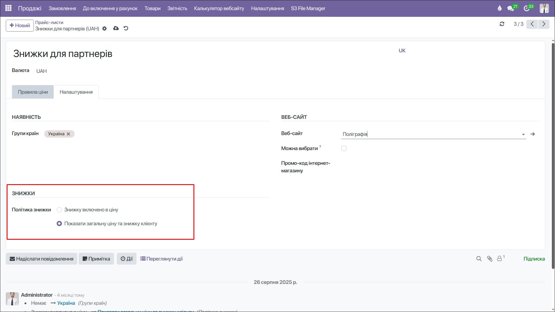• переменные цены, скидки и партнерские условия;